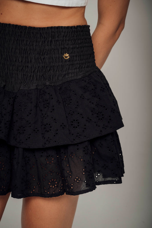 Falda Maple Ojalillo Algodón Negra