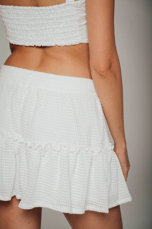 Falda marfil en tela tejida con pretina elástica Lula
