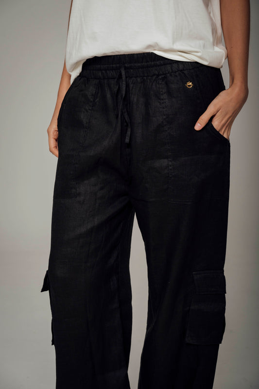 Pantalón negro tipo cargo en lino Wild
