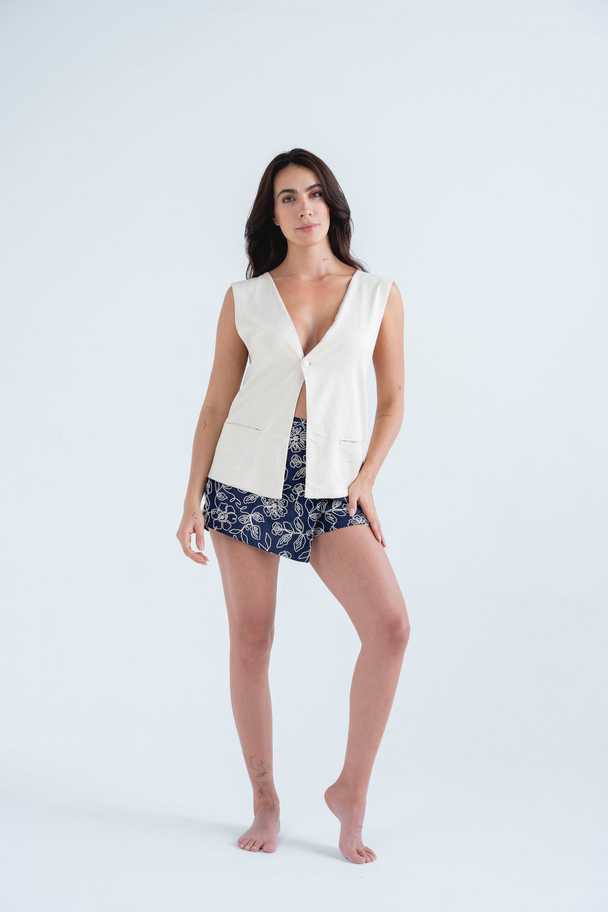 Falda Short Yvon bordada Azul